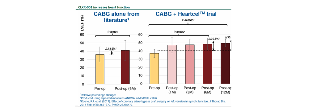 CLXR-001 addresses the mid-stage heart failure market where patients being treated by coronary artery bypass graft (CABG).
